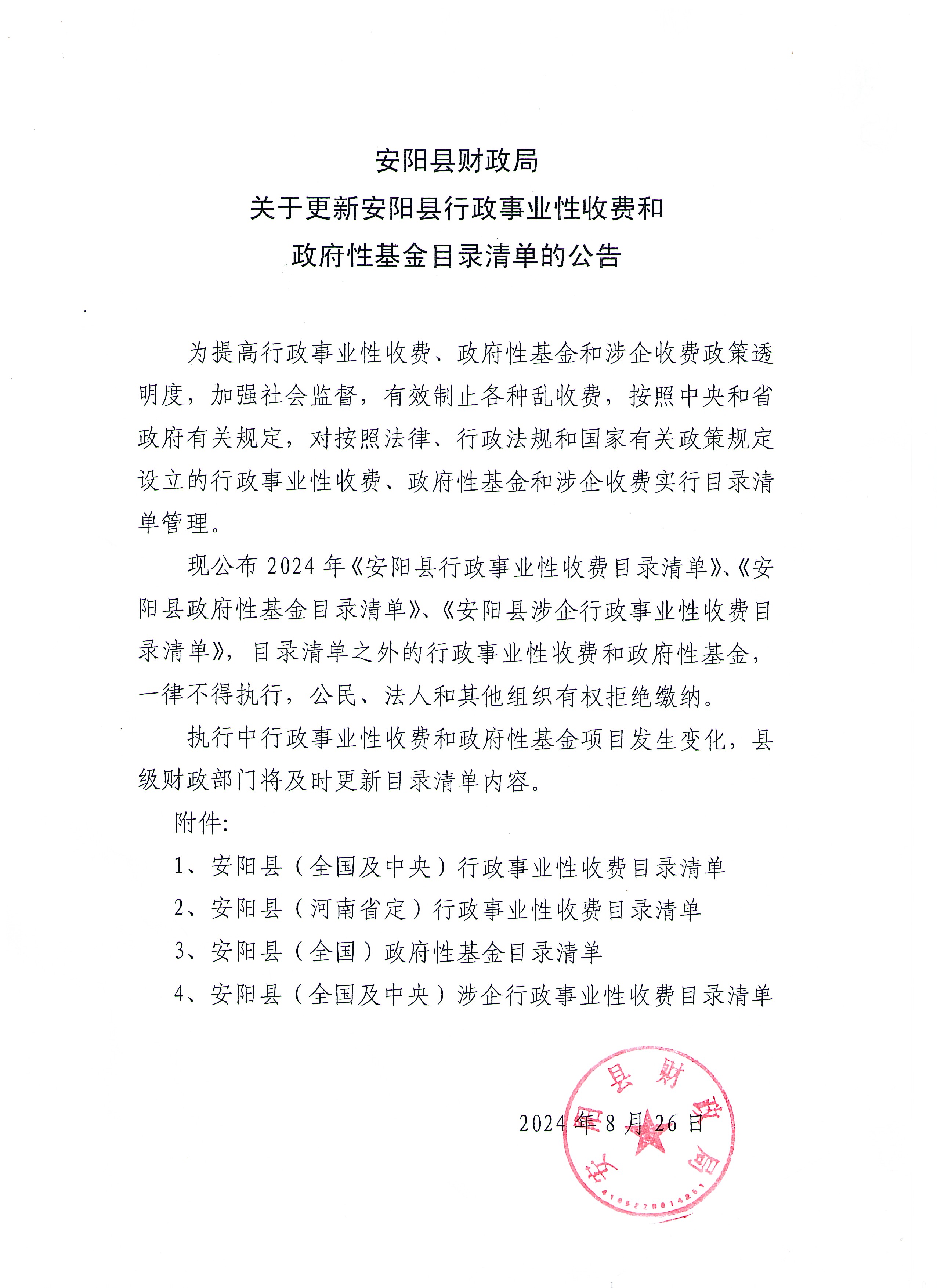 20240826安阳县财政局关于更新安阳县行政事业性收费和政府性基金目录清单的公告.doc
