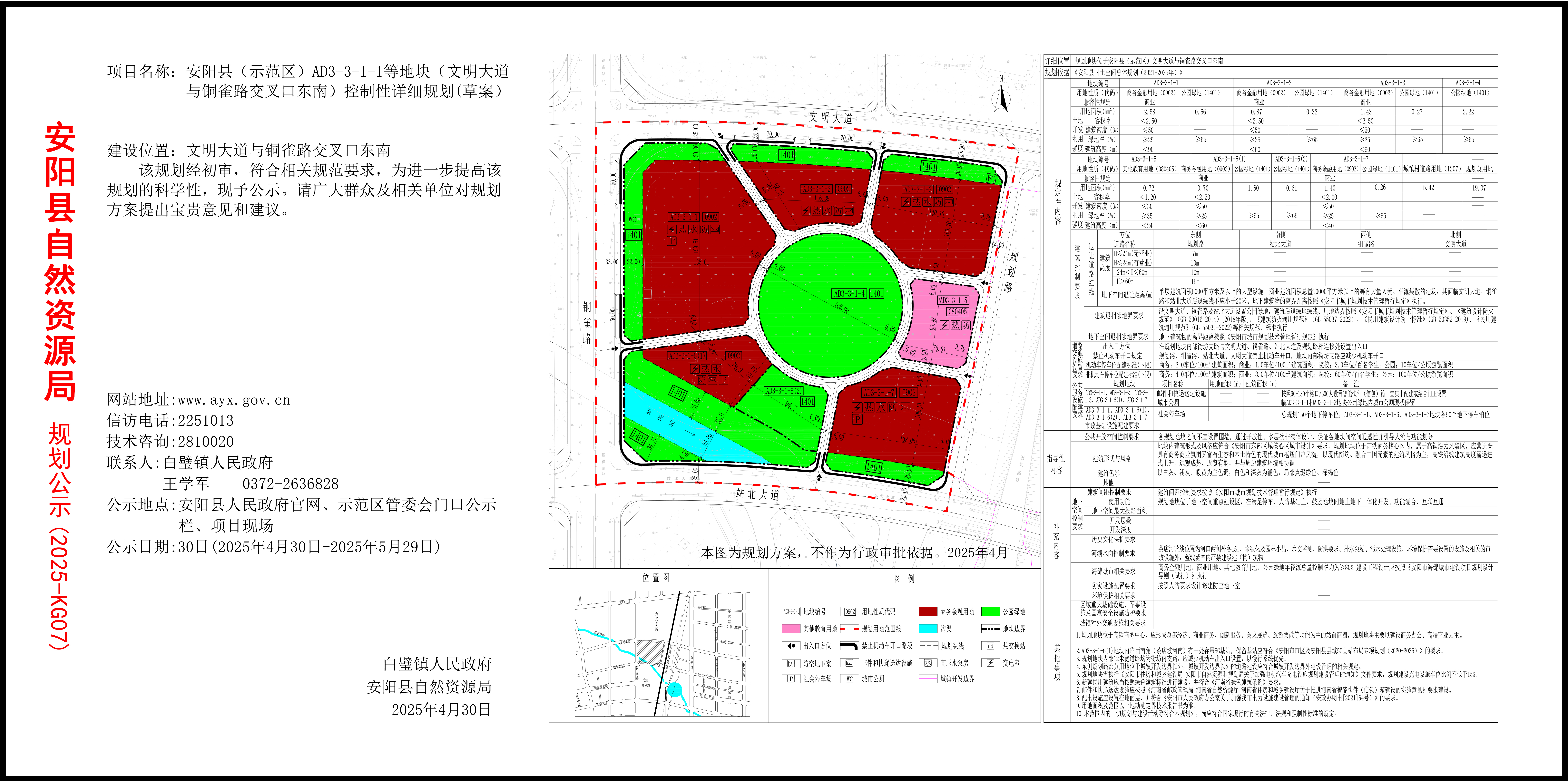 安阳县(示范区)AD3-3-1-1等地块(文明大道与铜雀路交叉口东南)控规图公示