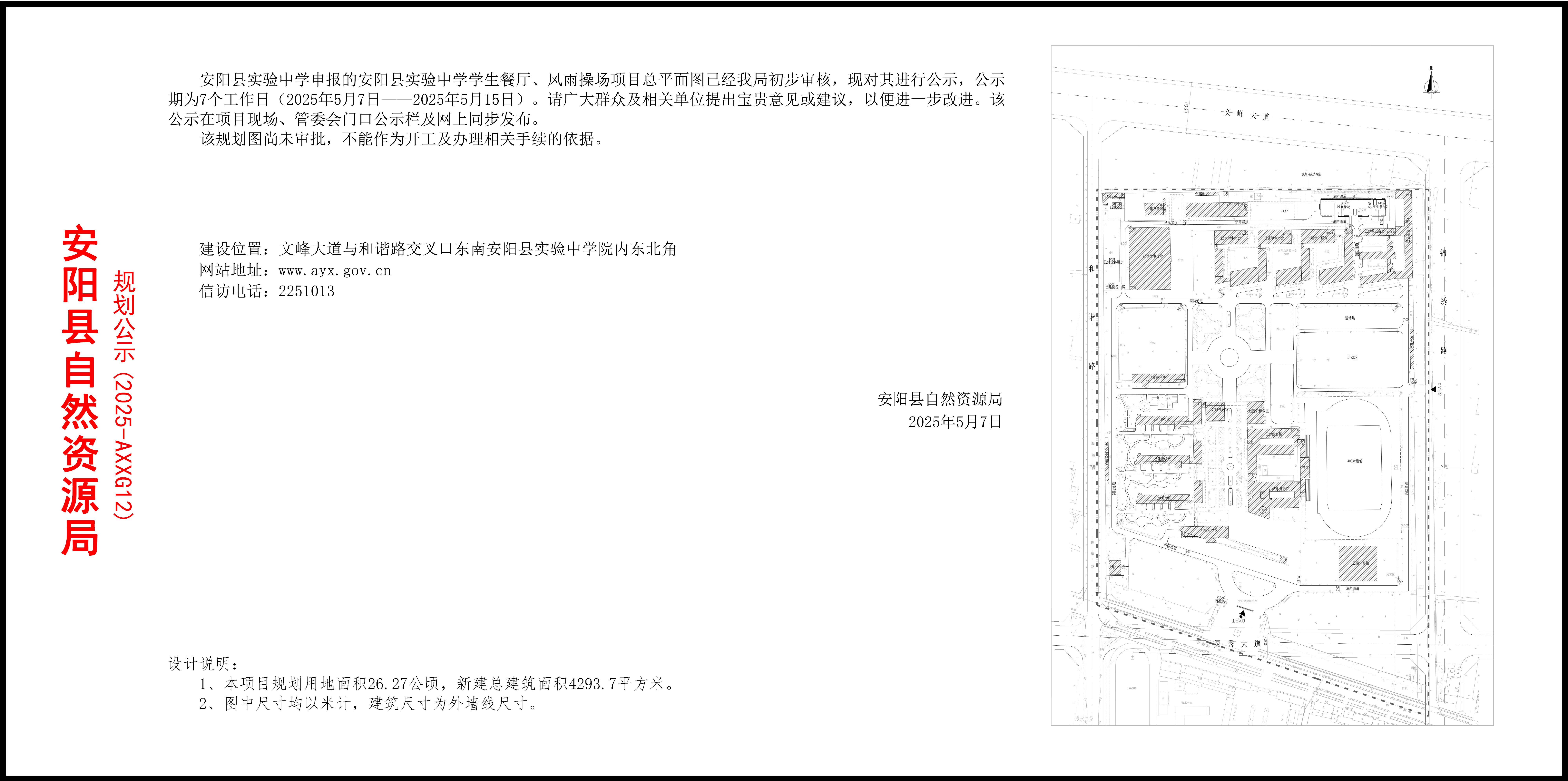 安阳县实验中学学生餐厅、风雨操场项目总平面图公示