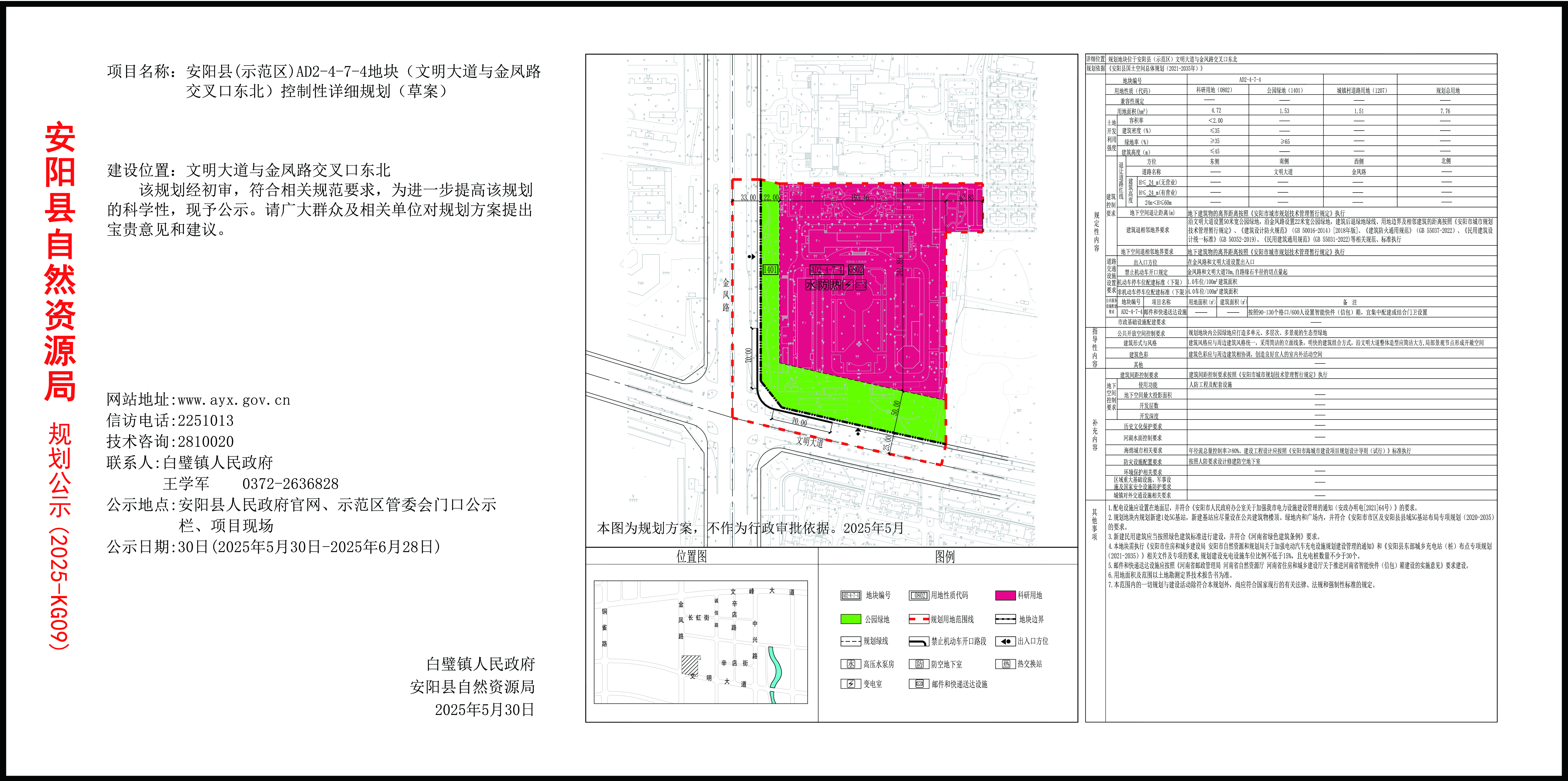 安阳县(示范区)AD2-4-7-4地块(文明大道与金风路交叉口东北)控规图公示(草案)