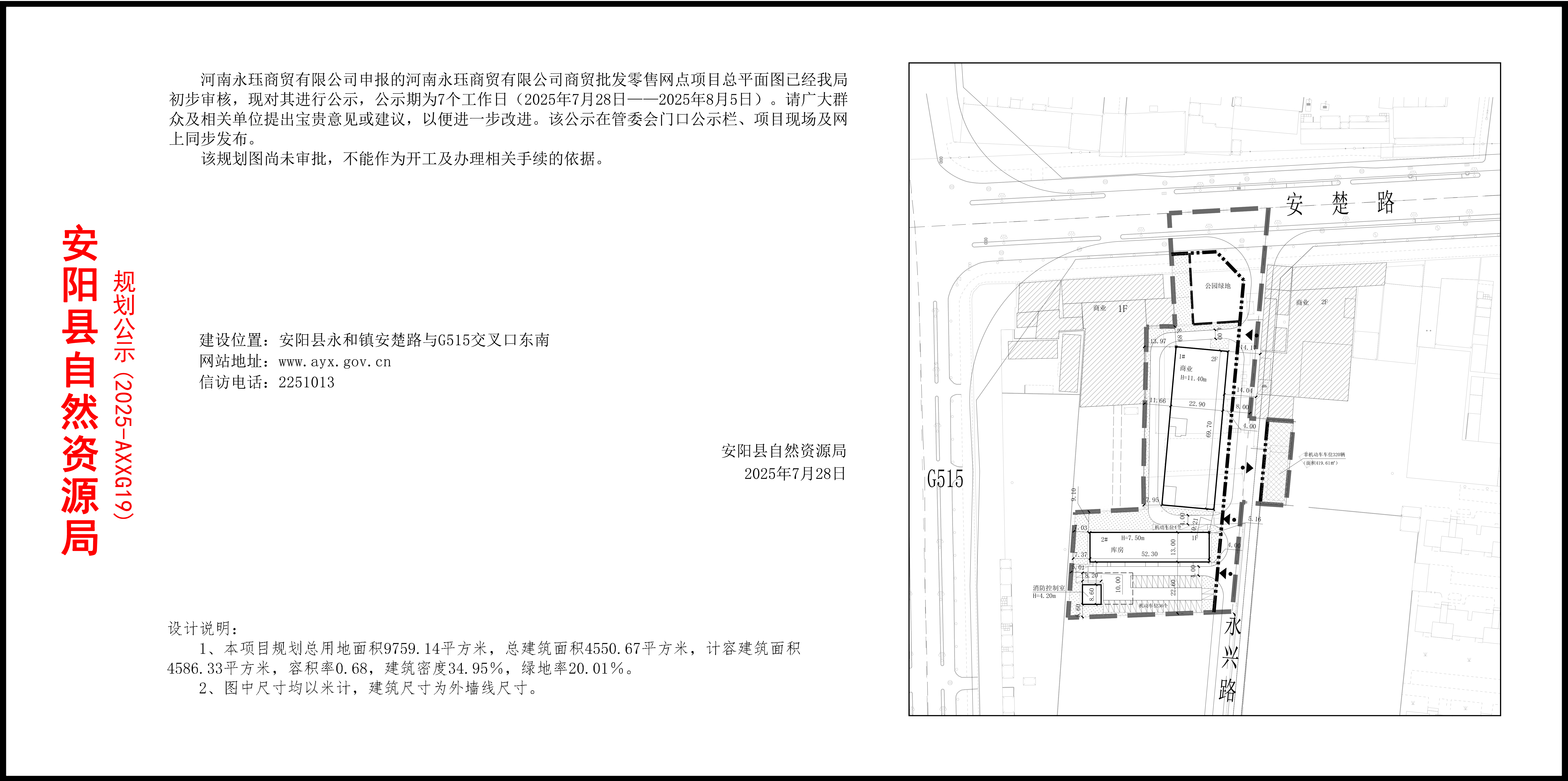 河南永珏商贸有限公司商贸批发零售网点项目总平面图公示