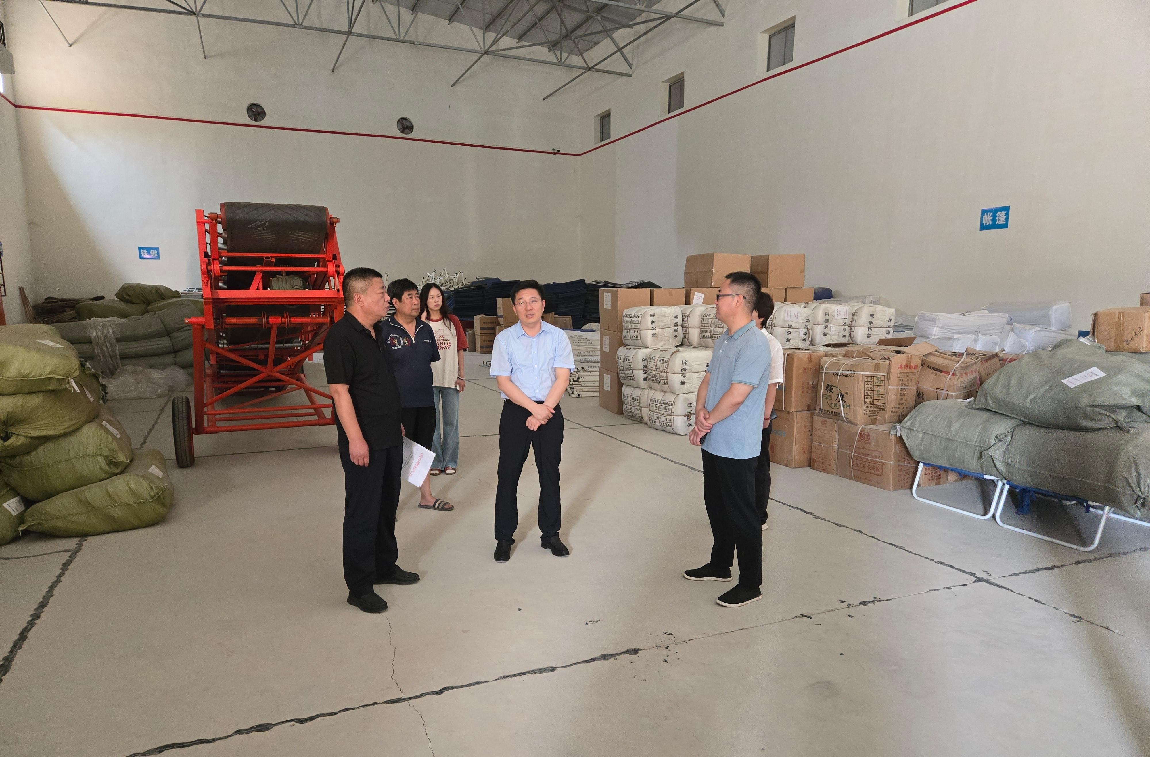 6月11日,县委常委、常务副县长刘建飞到县物资储备库督导调研汛期应急物资储备情况。