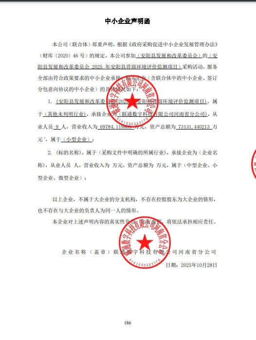 | 包号采购内容供应商名称地 址中标金额单位备注信息安县磋商采购-2025-17-1安阳县发展和改革委员会2025年安阳县营商环境评价监测项目联通数字科技有限公司河南省分公司郑州市金水区北环路40号院1号楼478,000.00元评审总得分:97分序号名称服务范围服务要求服务时间服务标准1安阳县发展和改革委员会2025年安阳县营商环境评价监测项目详见磋商文件详见磋商文件一年详见磋商文件 |