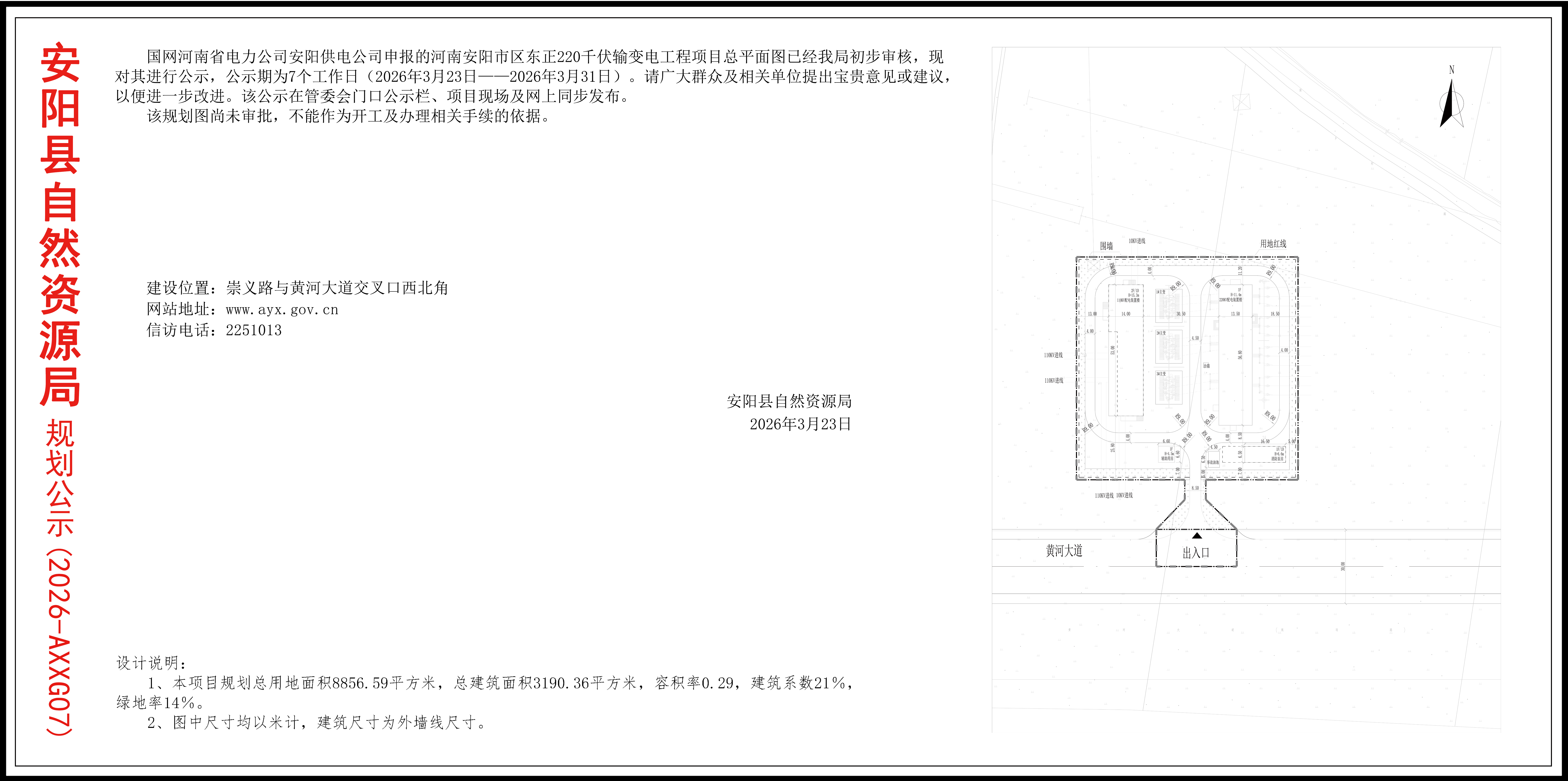 河南安阳市区东正220千伏输变电工程项目总平面图公示
